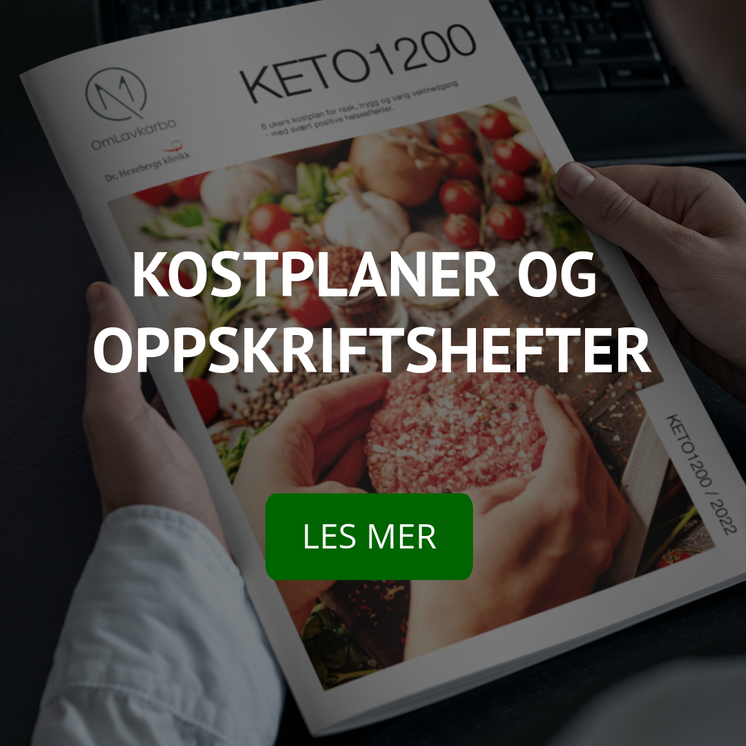 Omhelse.no har flere hundre keto oppskrifter. Du kan også kjøpe oppskriftshefter og kostplaner med ketogent kosthold fra omlavkarbo.no.