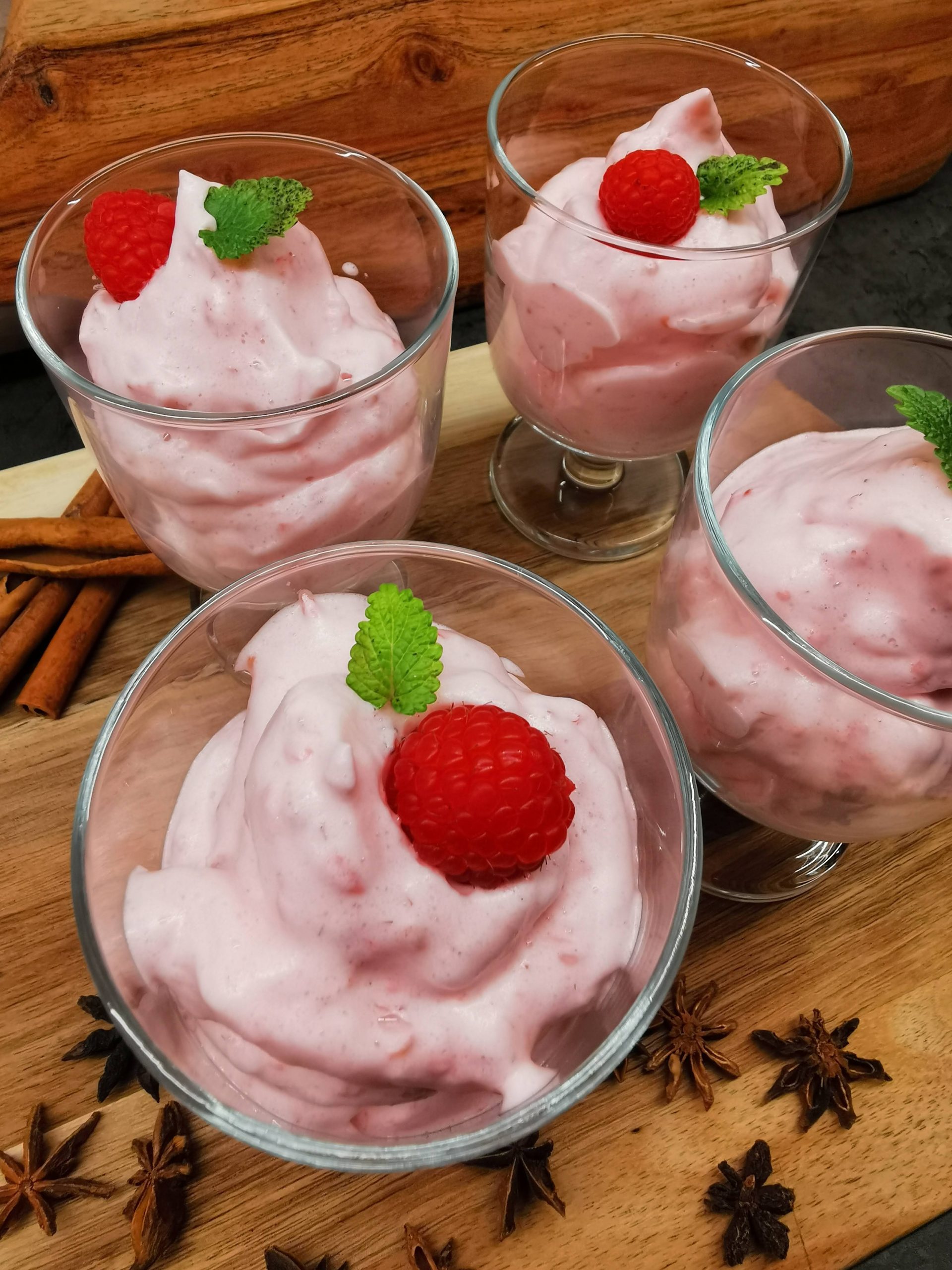 Lavkarbo trollkrem med bringebær er en fantastisk god dessert som du lager på bare 7 minutter. Desserten er fløyelsmyk og luftig!