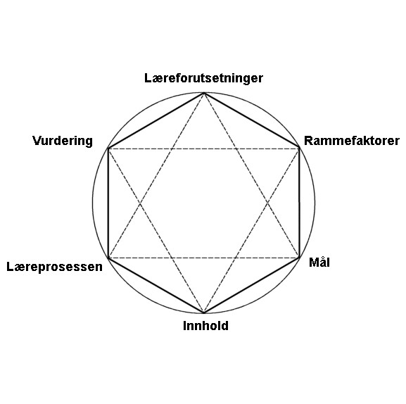 Vi deler gjerne den didaktiske relasjonsmodellen opp i seks punkter. Det er viktig å huske at selv om disse her er nummerert, så er ikke dette en statisk rekkefølge. Den didaktiske relasjonsmodellen skal brukes dynamisk der alle punktene påvirker de andre punktene.