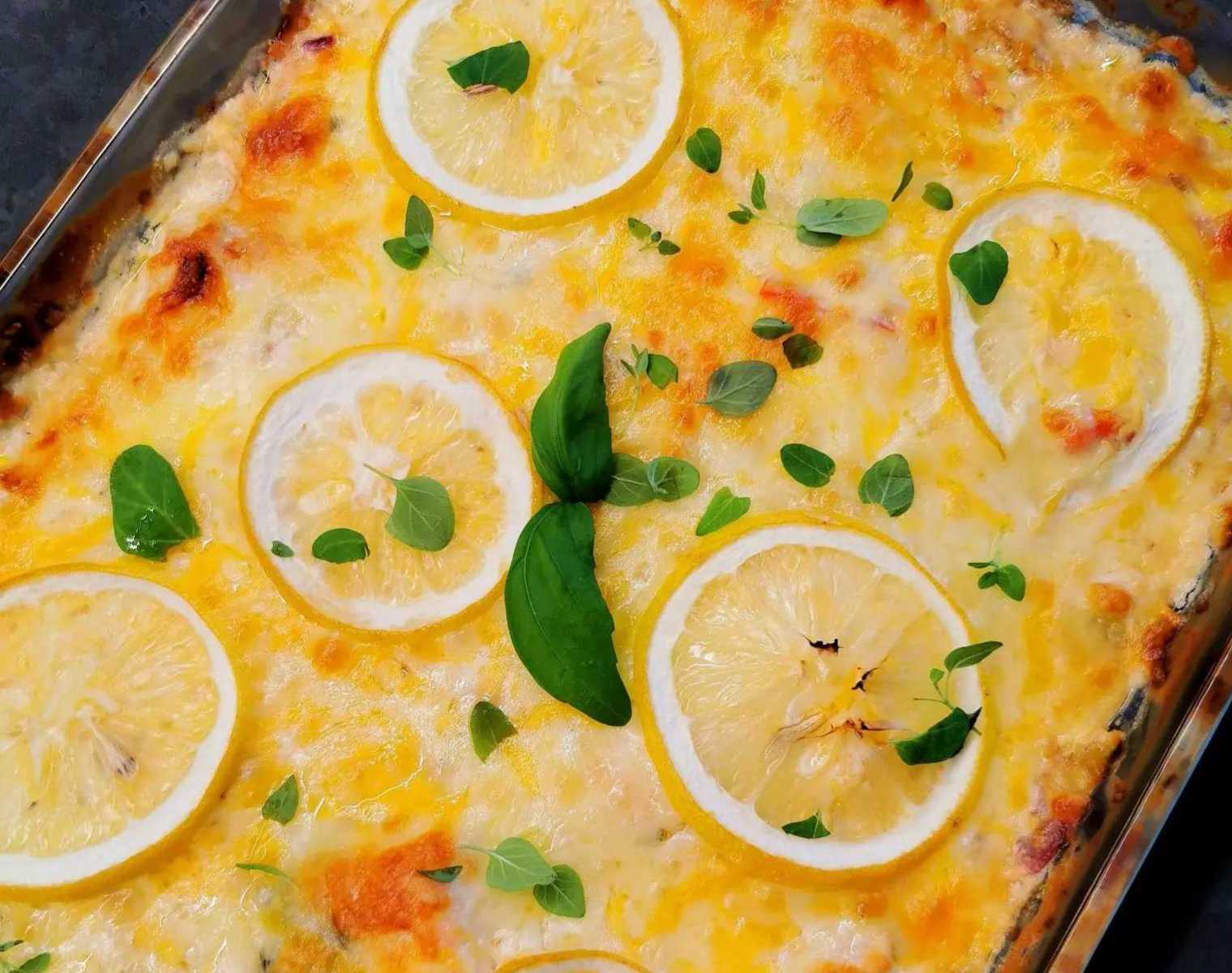 Lavkarbo gratinert laks med eple- og sitronsaus