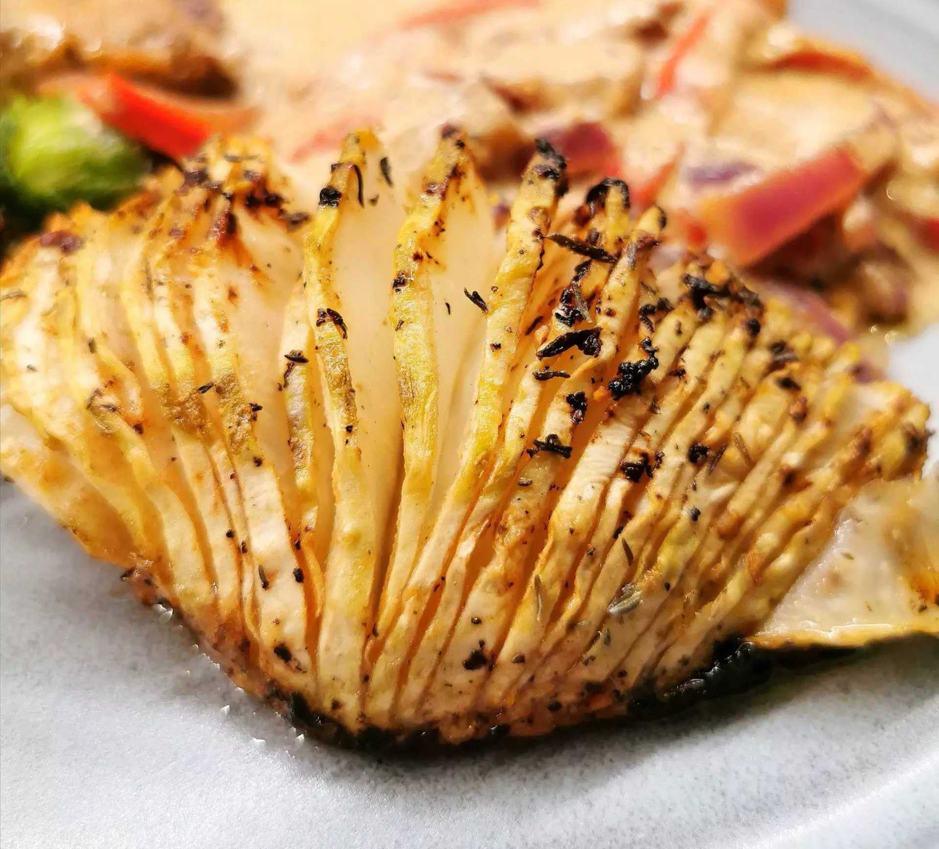 Lavkarbo hasselback sellerirot, nydelig godt middagstilbehør!