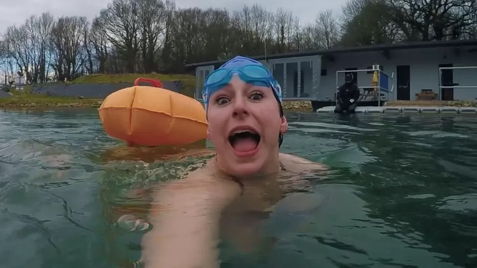 «Livet er godt. Jeg går fremdeles til rådgivning, men jeg vil aldri slutte med isbadingen», sier Sarah. Bilde: BBC.