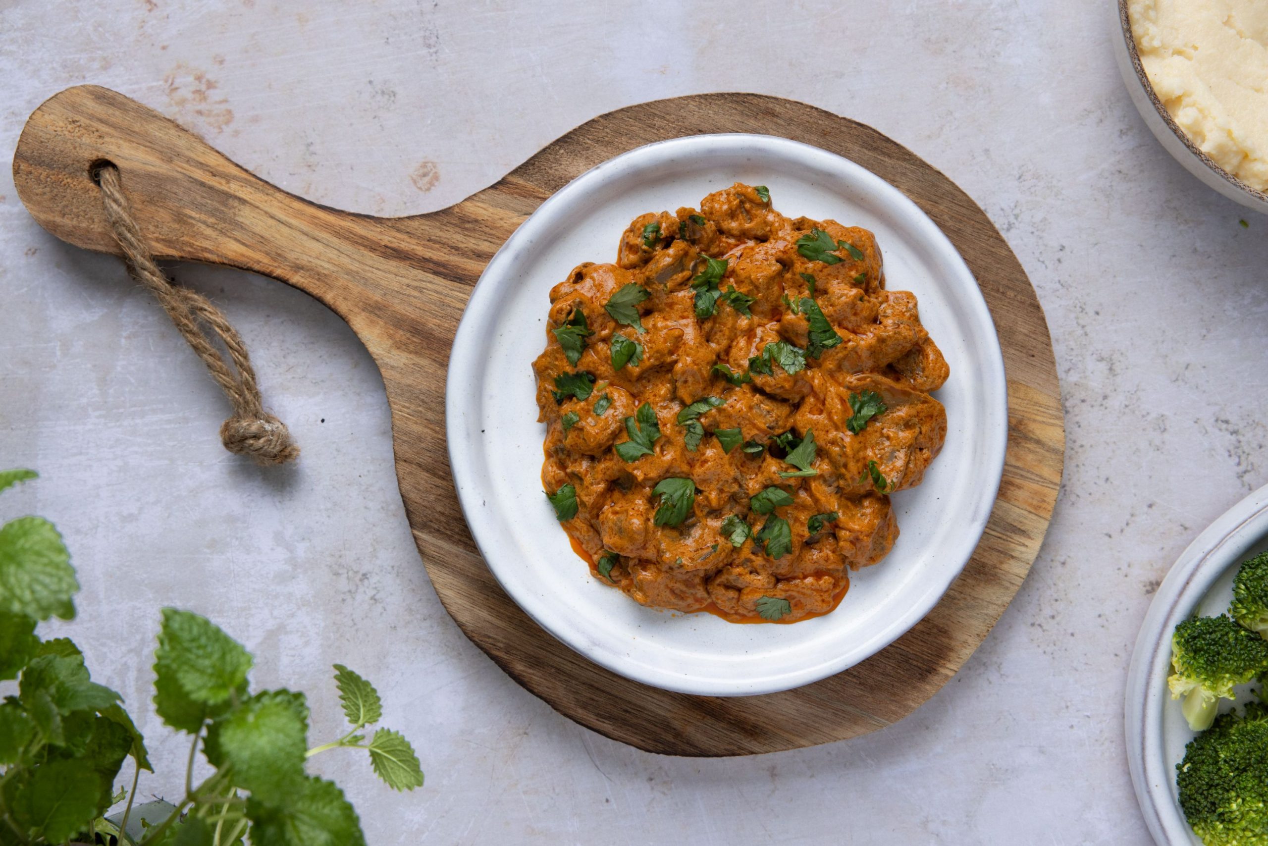 Biff stroganoff passer fint sammen med blomkålpuré og dampet brokkoli eller smørstekte rosenkål.