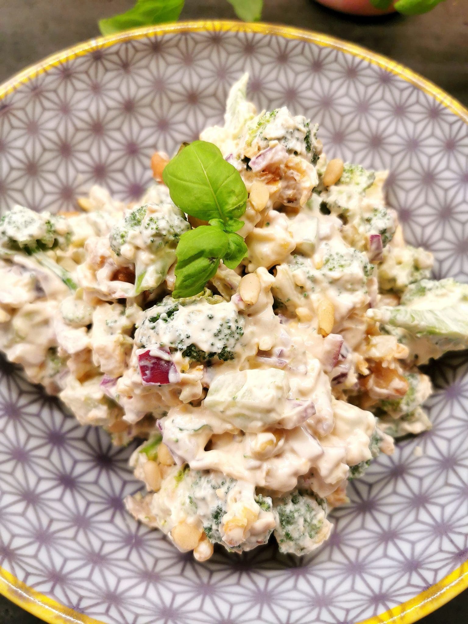 Salaten passer veldig godt til grillmat, som en god erstatter for potetsalat. Brokkolien skal ikke kokes, og du får derfor en god og knasende konsistens.