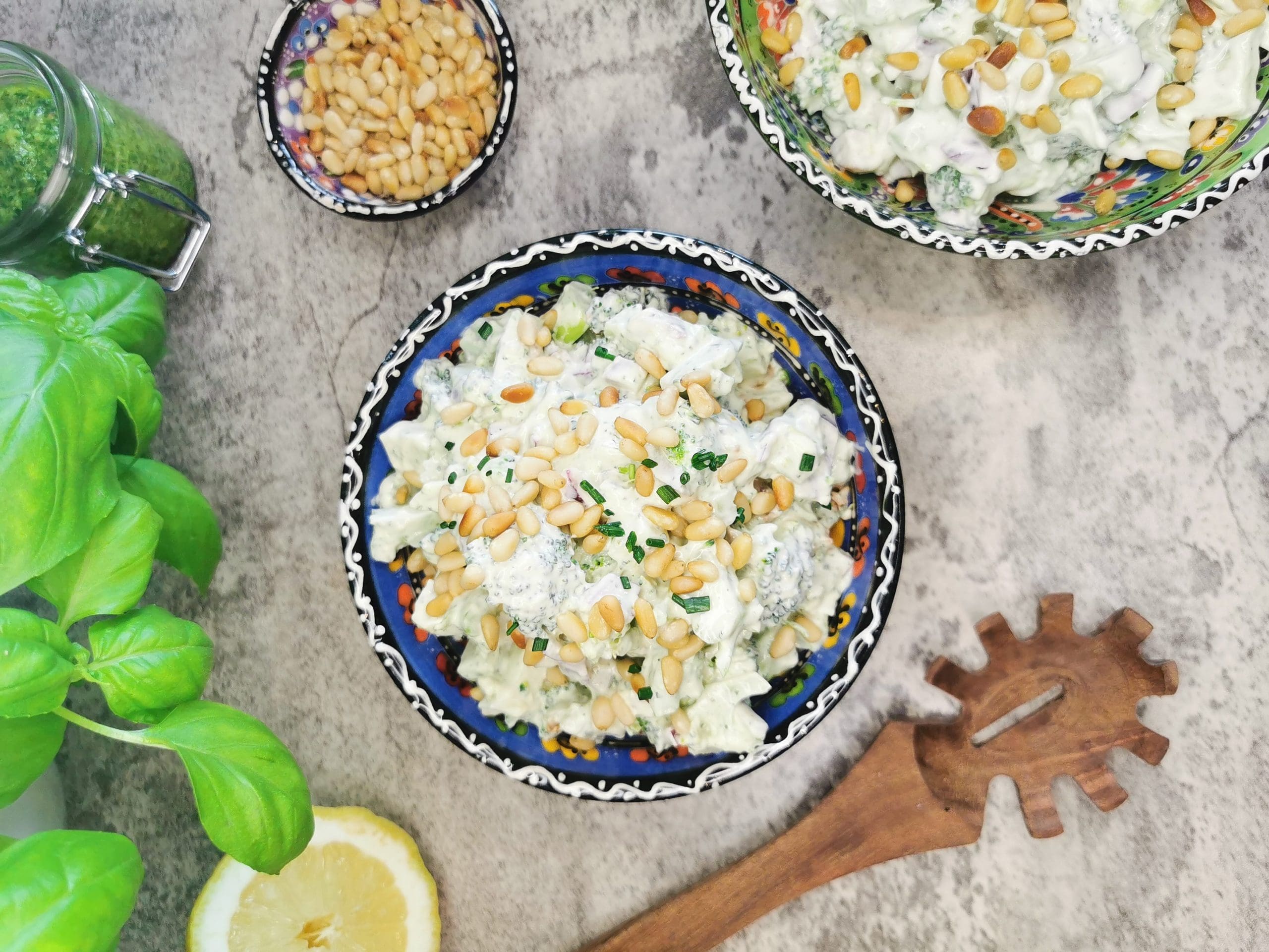 LAVKARBO BROKKOLISALAT MED PESTO OG SOLTØRKET TOMAT