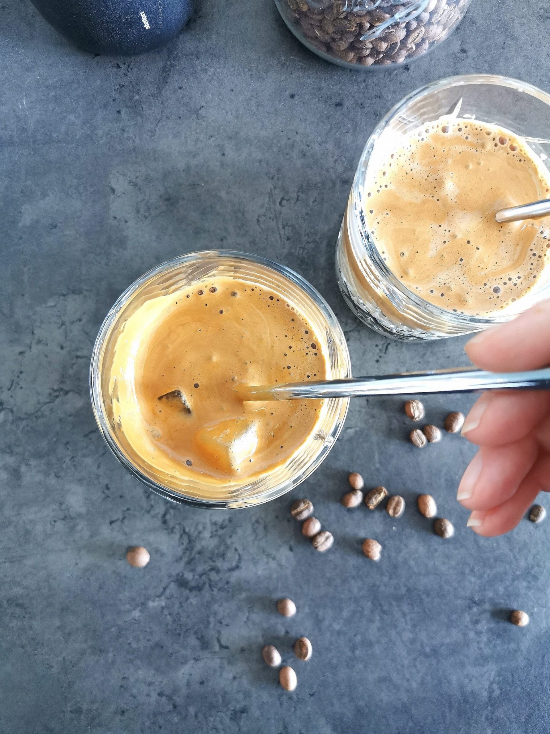 - Rør rundt og nyt et glass med lavkarbo dalgona kaffe!