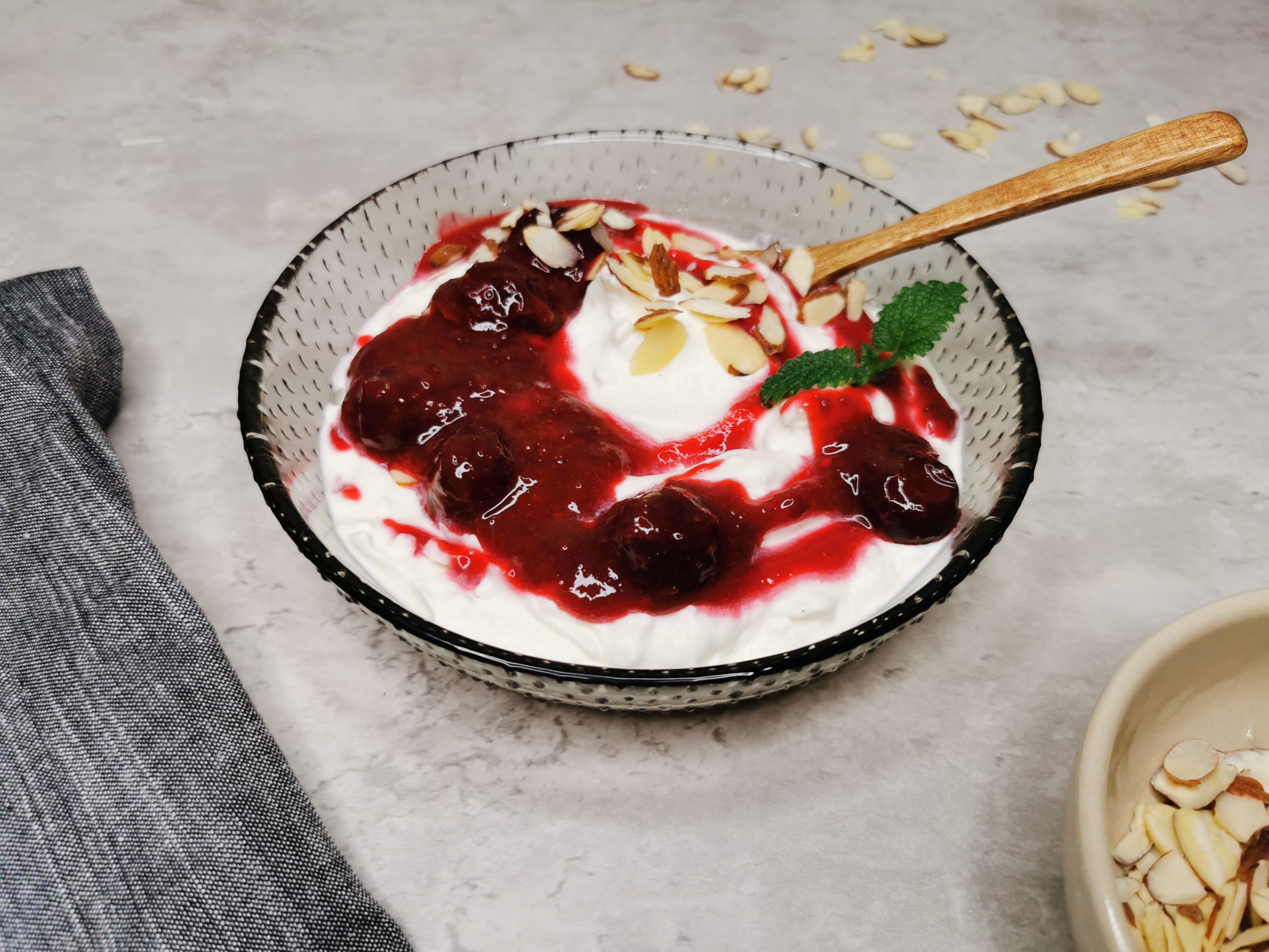 Lavkarbo kirsebærsaus passer godt som topping på lavkarbo riskrem med cottage cheese, eller du kan servere sausen til for eksempel gresk yoghurt.