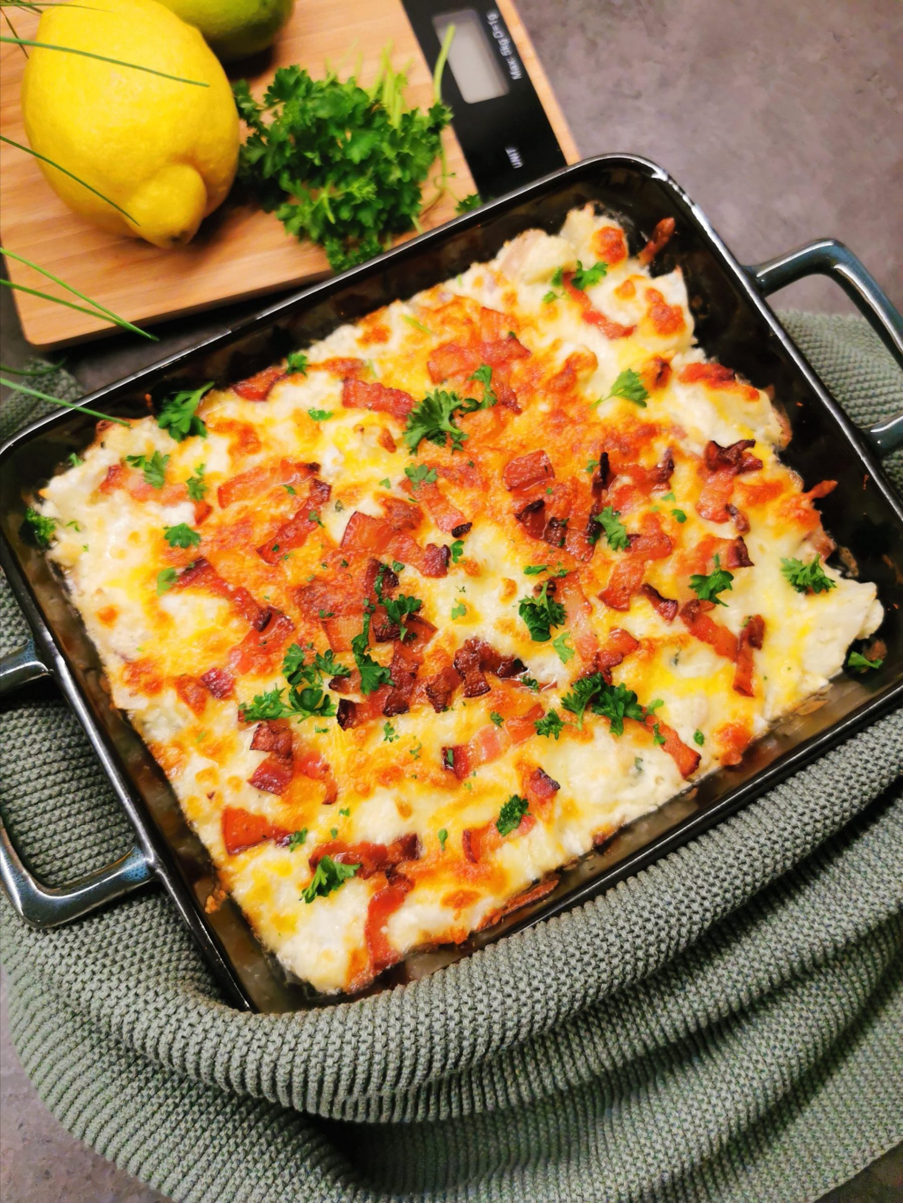 Lavkarbo «Mac and Cheese» med bacon er en enkel og smaksrik middag som faller i smak hos de aller fleste. Ordinært lages denne gratengen med macaroni. Vi har erstattet dette med blomkål, og syntes dette ble en skikkelig god kombinasjon.