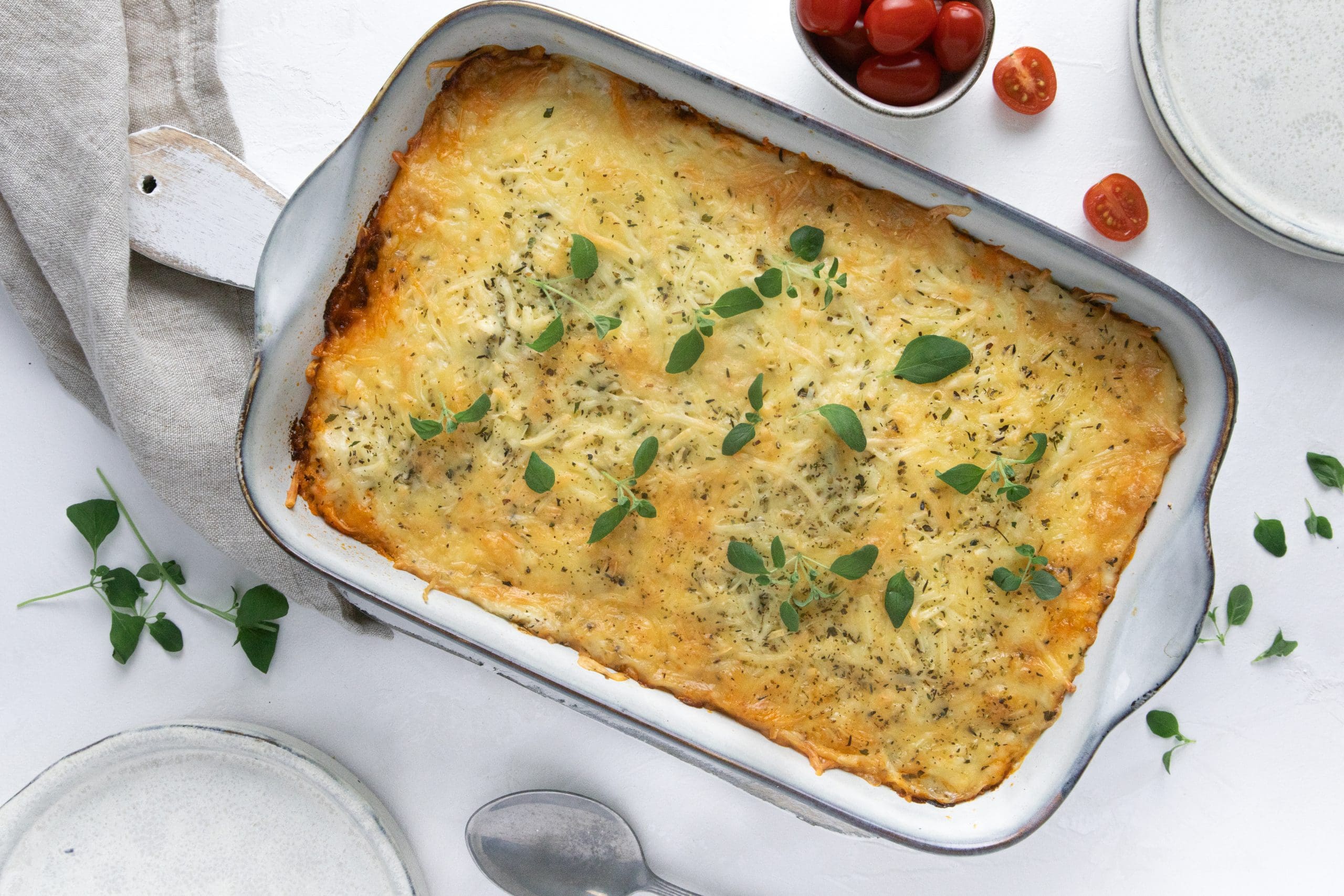 I vår variant av lavkarbo moussaka har vi brukt sellerirotpuré som erstatning for poteter. Dette gir et enda mer smaksrikt resultat, etter vår preferanse.
