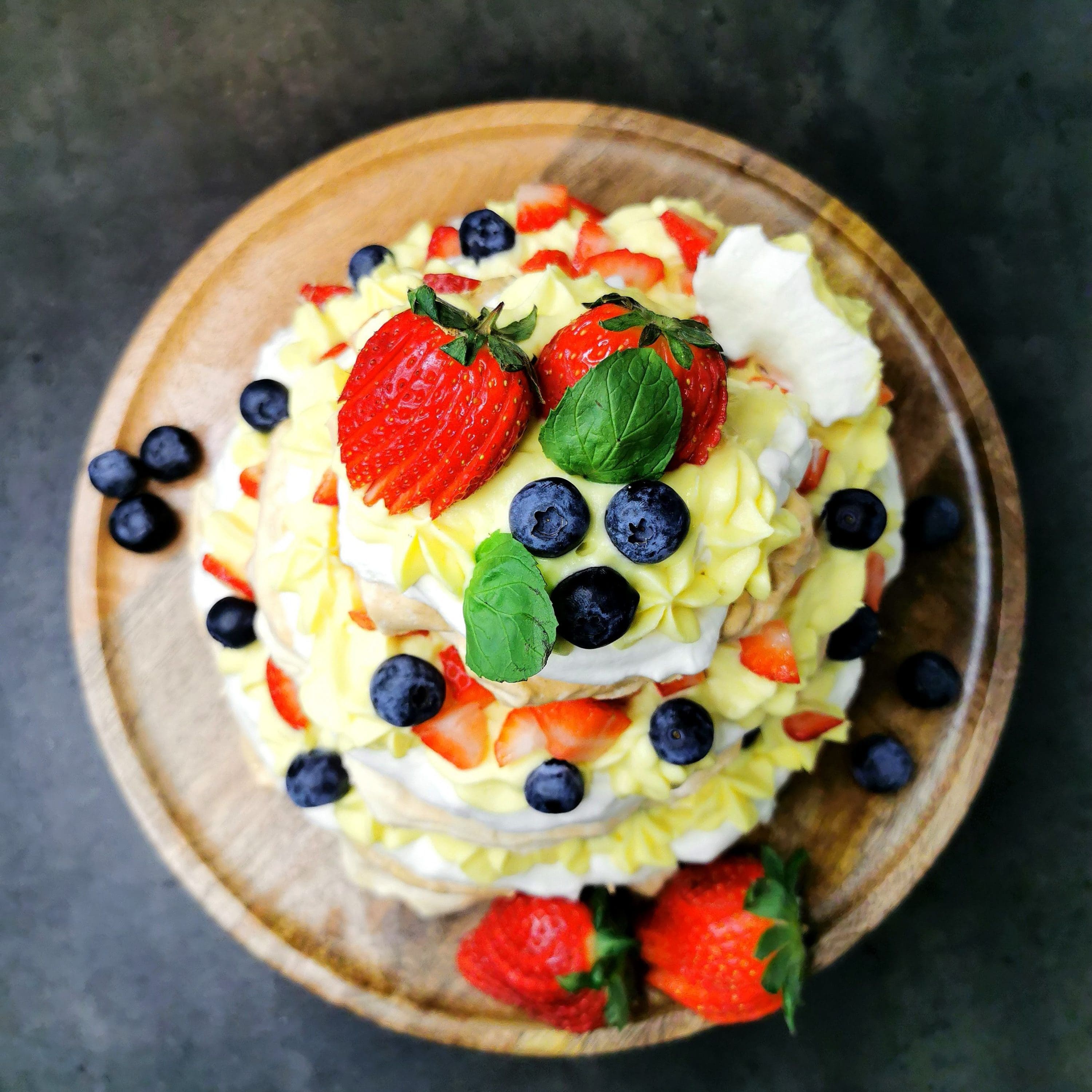 Fyller du pavlovaen med krem, vaniljekrem og bær får du en kake det er vanskelig å motstå!