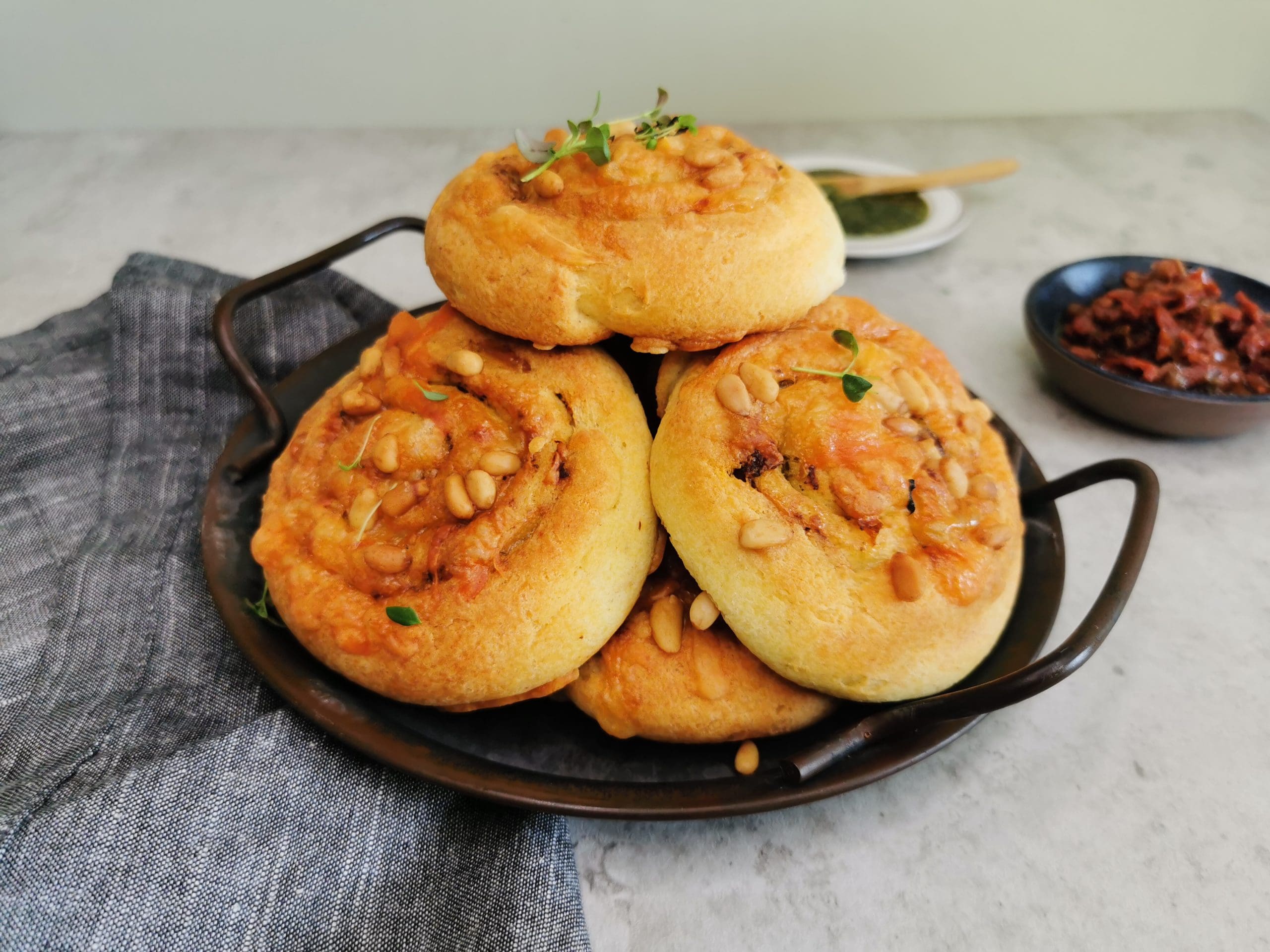 Pestosnurrer med soltørket tomat og smeltet ost!