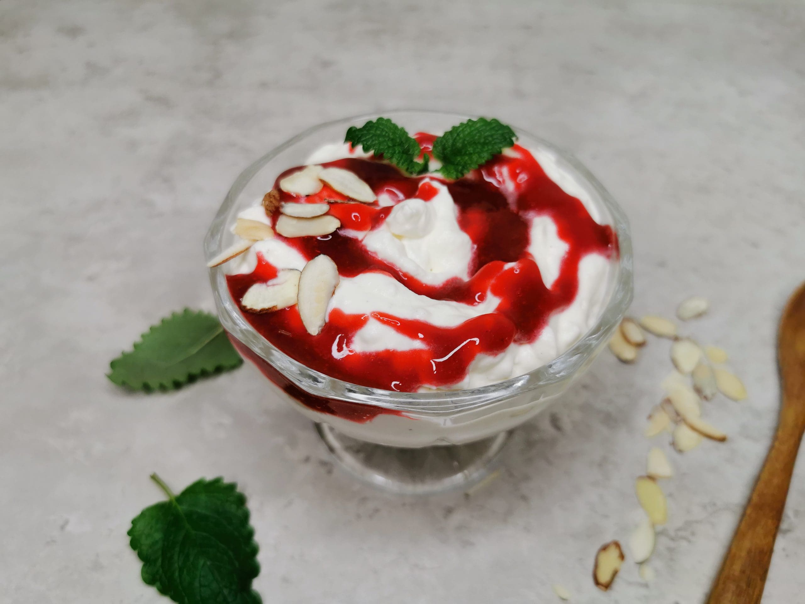 Riskrem smaker godt sammen med friske bær eller en rød saus. Prøv for eksempel med lavkarbo bringebærsaus eller lavkarbo kirsebærsaus.