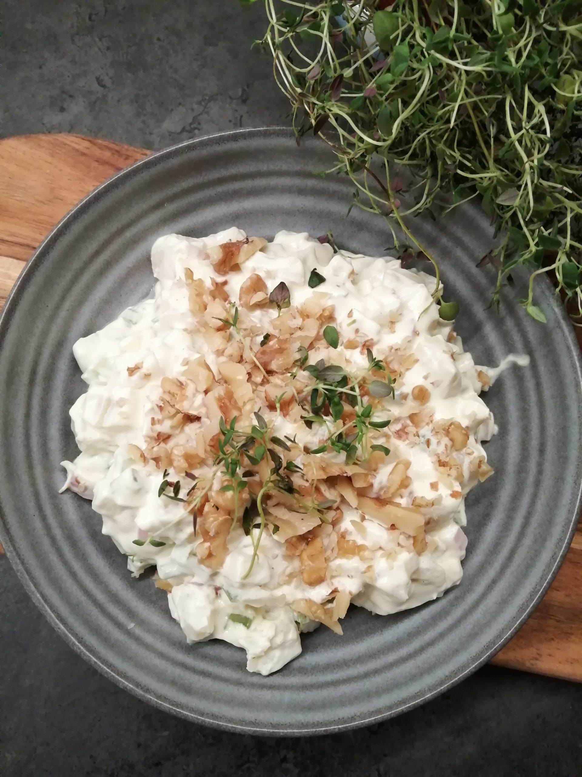 Veldig godt til juleribba! Får assiosasjoner til waldorfsalat, og tenker at denne også passer kjempegodt til nyttårskalkunen.