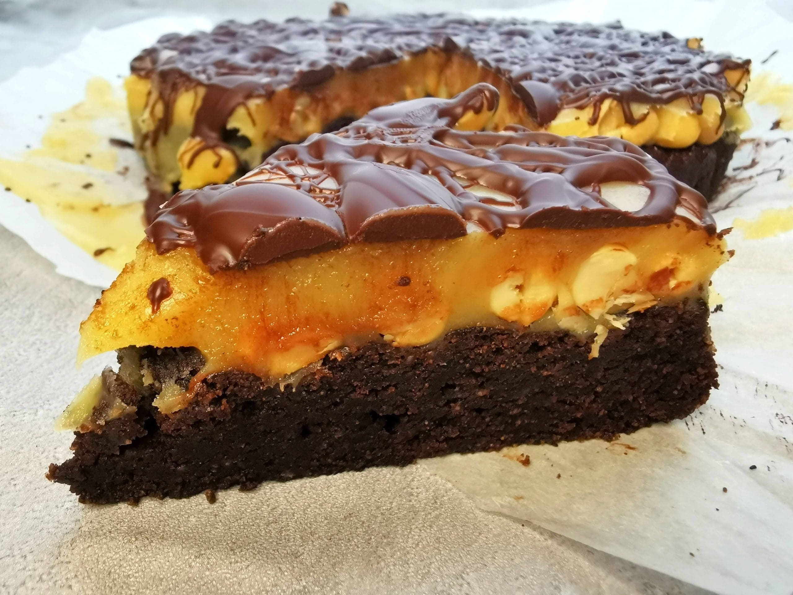 Lavkarbo Snickersbrownie med karamell og peanøtter