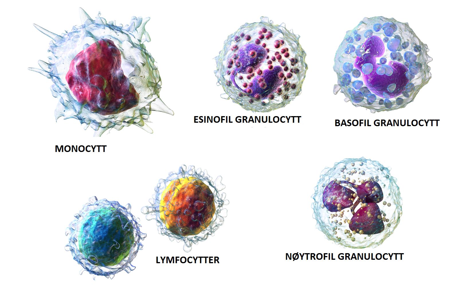 5 ulike typer hvite blodceller