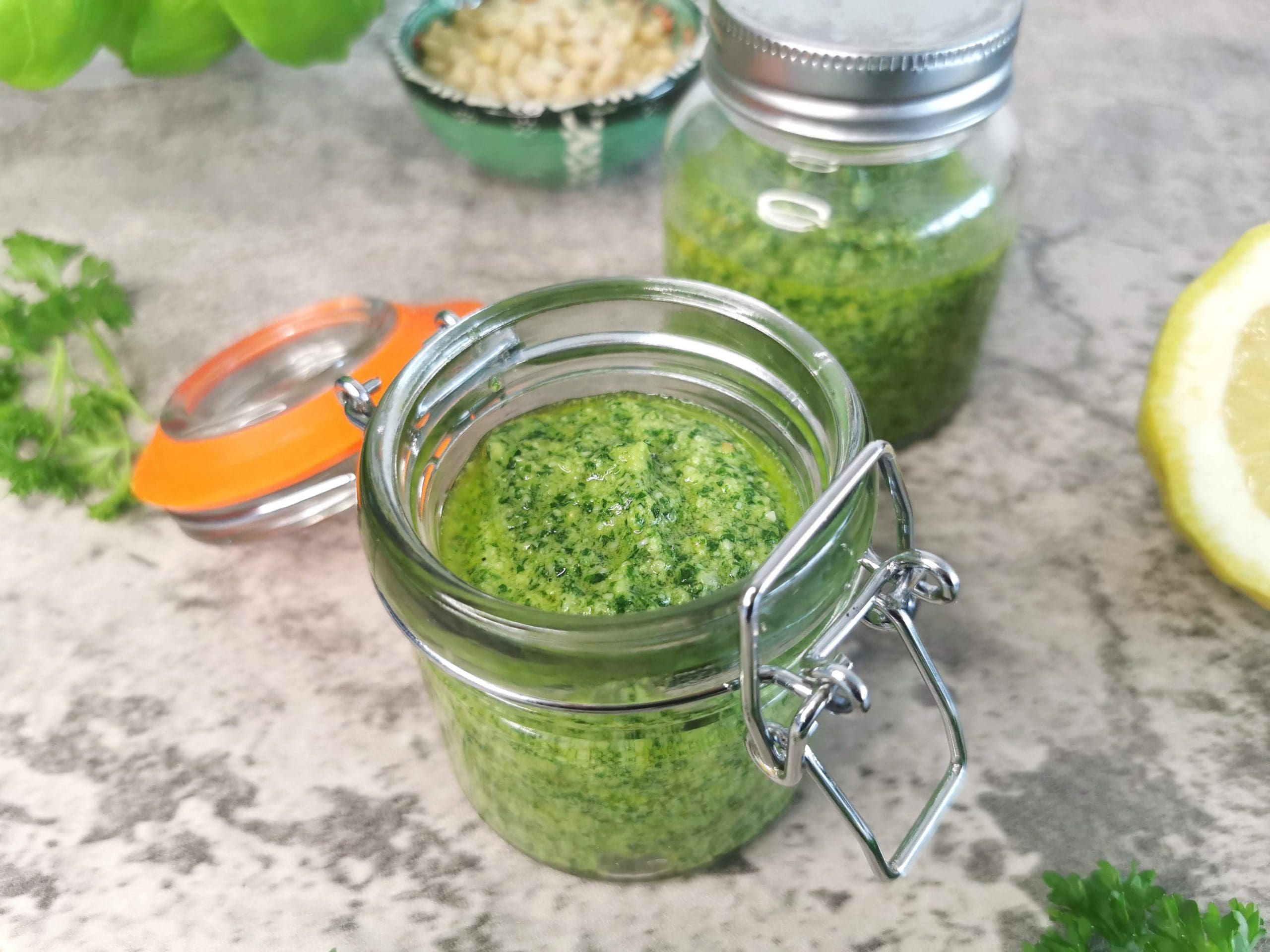Lavkarbo pesto med persille og basilikum